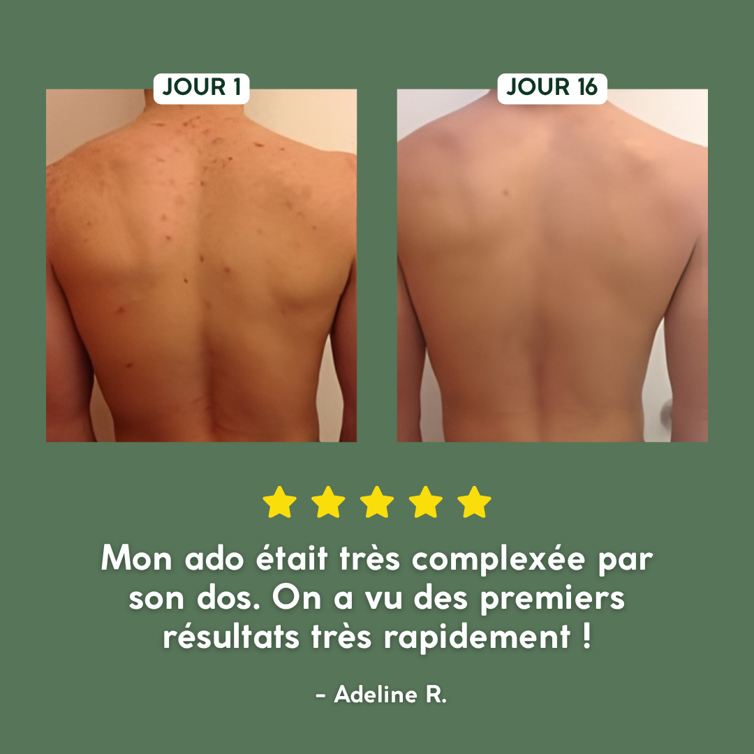 Oui. Le savon agit directement sur les bactéries responsables de l’acné corporelle.97 % de nos clientes ont vu leur peau s’améliorer dès les 2 premières semaines.